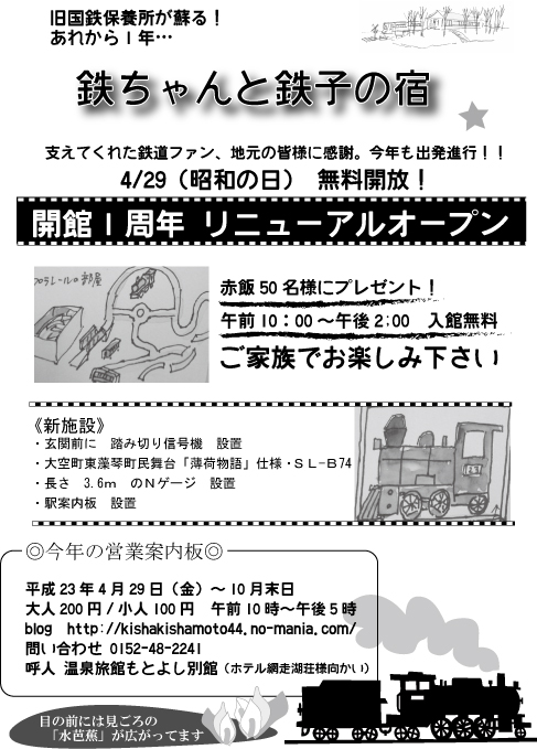さて、今年度オープンしました鉄ちゃんと鉄子の宿、